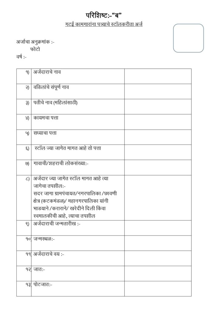 प्रसिध्दीनंतर परिशिष्ट “ब” मध्ये असलेल्या विहित नमुन्यात अर्ज मागवून घेतील. ( गटई स्टॉल वाटप योजनाअर्जाचा नमूना परिशिष्ट- “ब” )